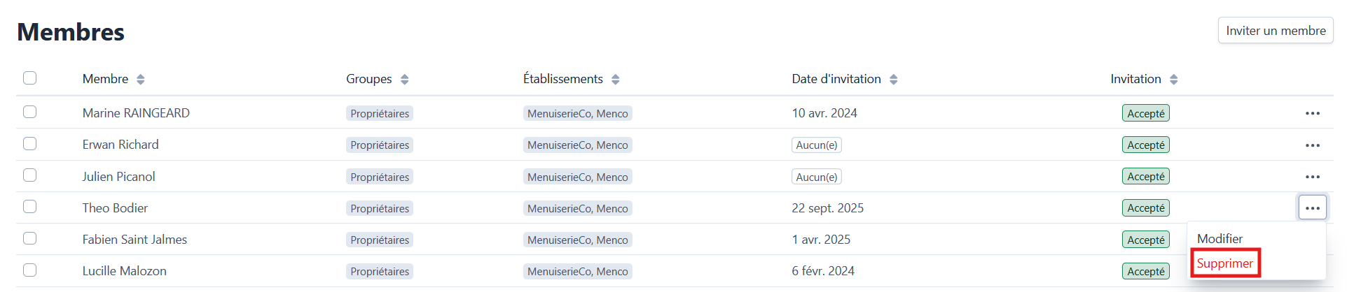 Sélectionnez l’utilisateur ou l’utilisatrice à “supprimer”